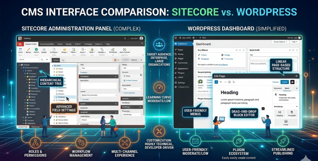 WordPress now powers over 43% of all websites worldwide, and this popularity means that content creators are already familiar with its workflows. By virtue of this familiarity, the adoption happens fast with minimum training overhead post-Sitecore-to-WordPress migration.